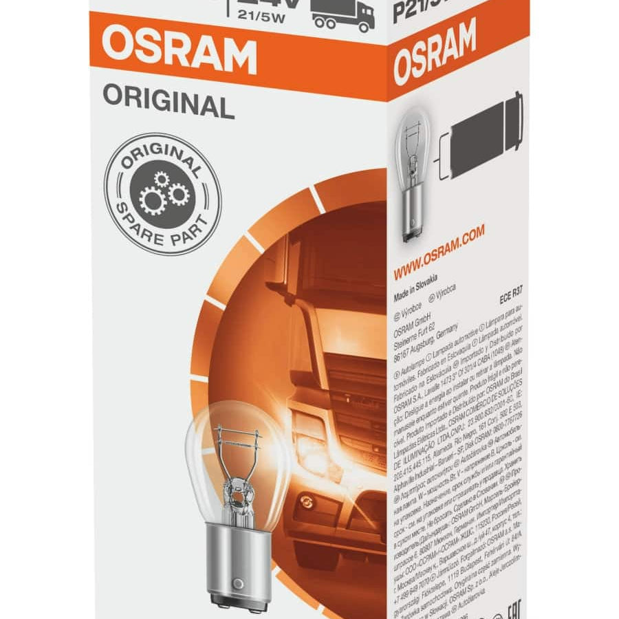 Osram Bay15d 21W and 21/5W bulbs for 12V and 24V systems. Ideal for tail lights, brake lights, and indicators. Premium quality and reliability for cars and trucks. Read more