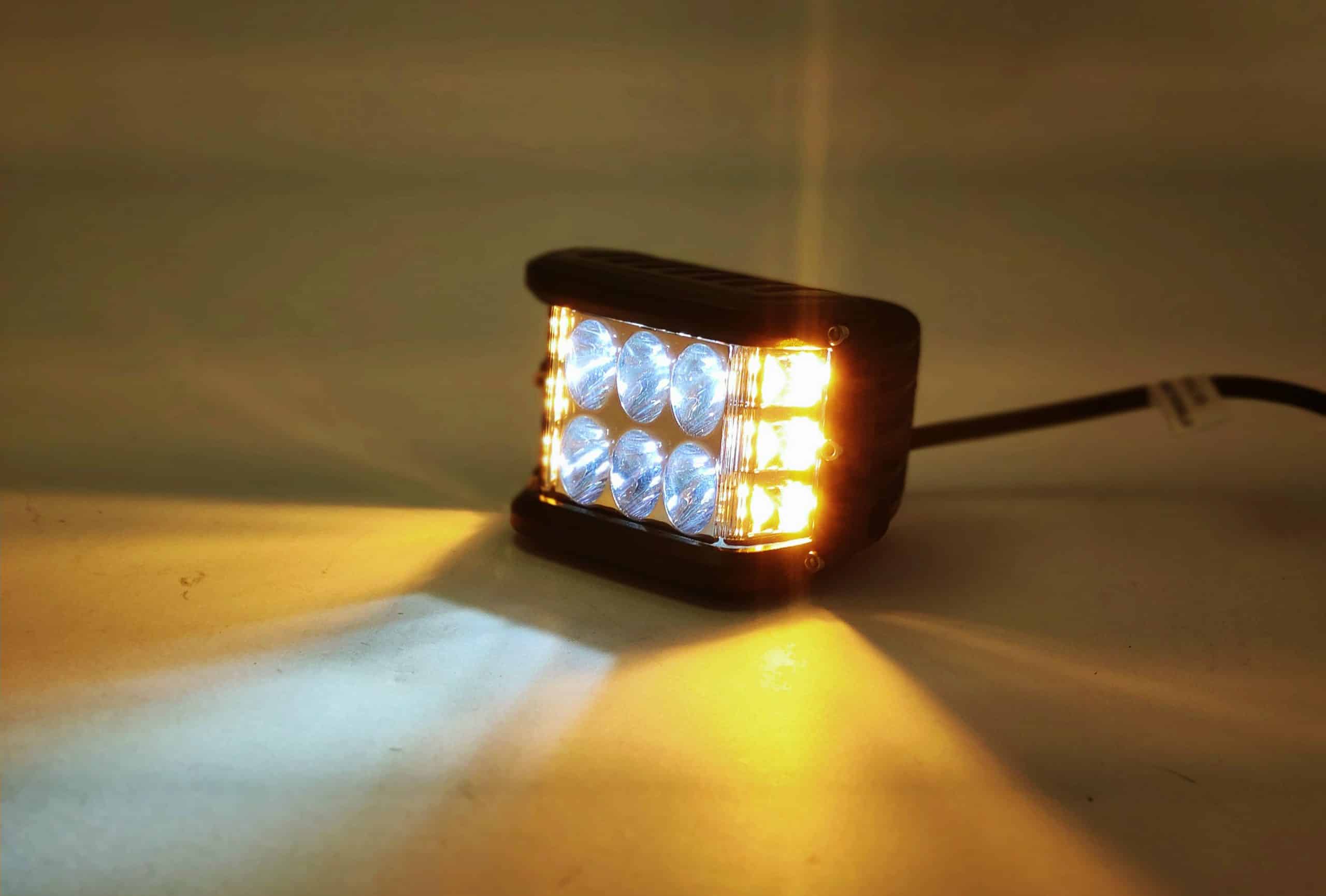 LED Work Light Square Dual Row 24W with Amber Flashing Sides 12/24V